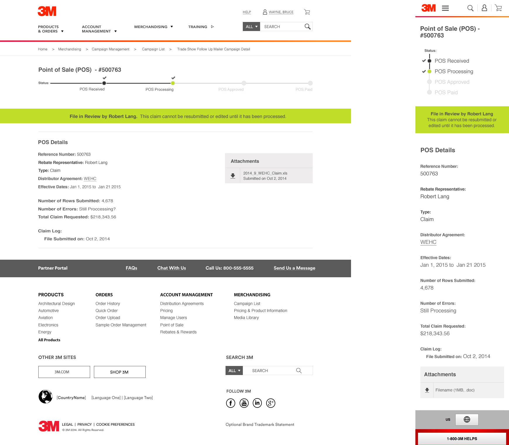 Detail Page for POS reports. Ability to quickly view and understand the process and ability to download and view the report which was updated.