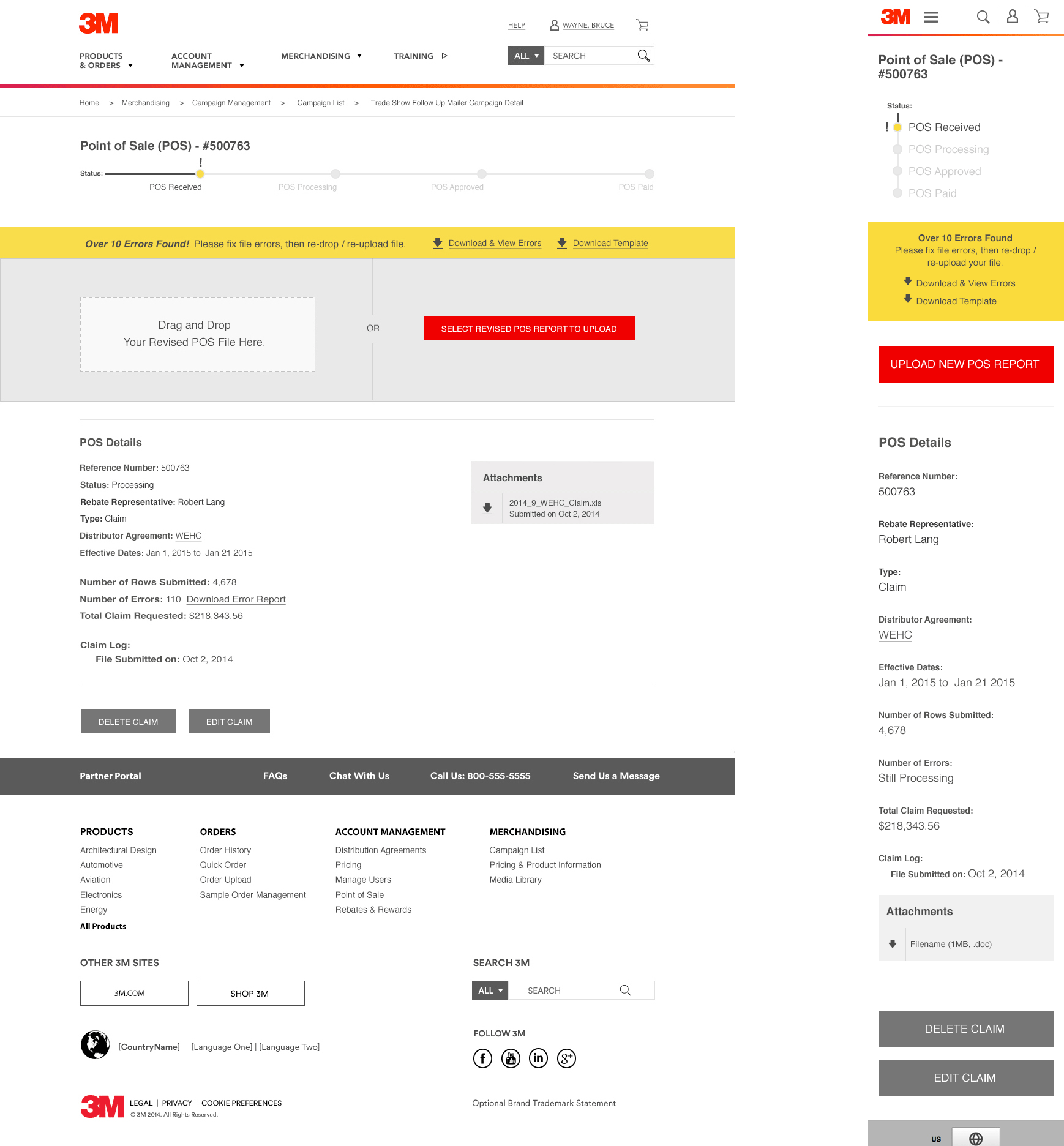 POS detail page. Shows errors and allow user to re-upload corrected reports.