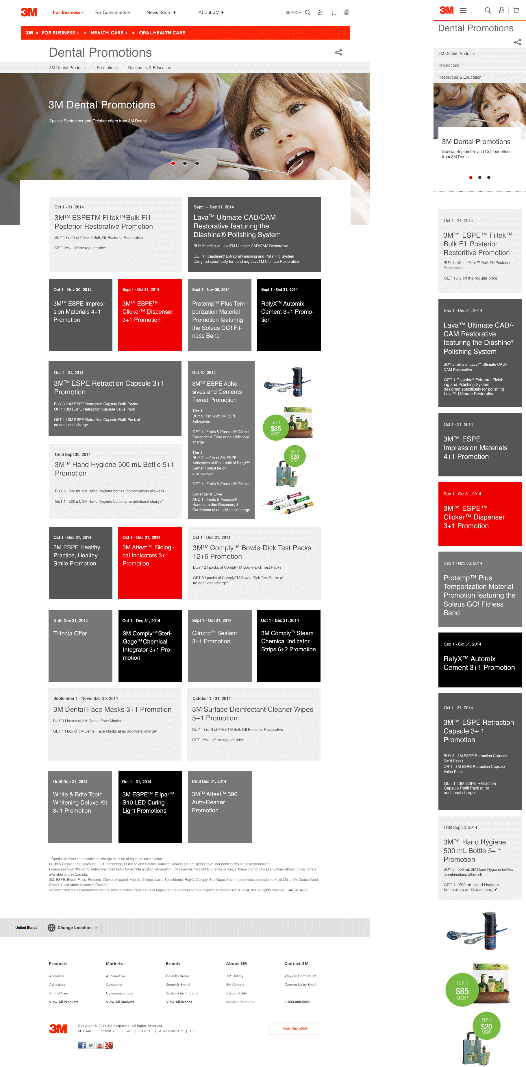 Health Care Sub-Market page for Dental. Increased product and promotion focus with continued presence of the 3M brand list.