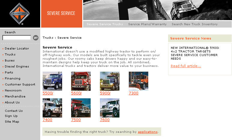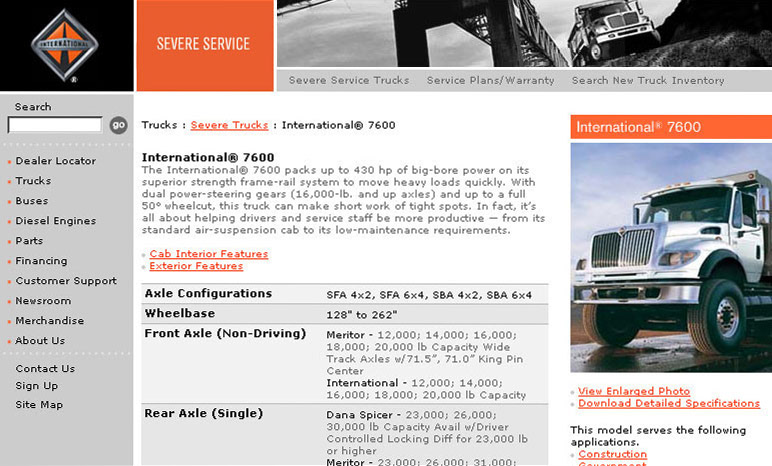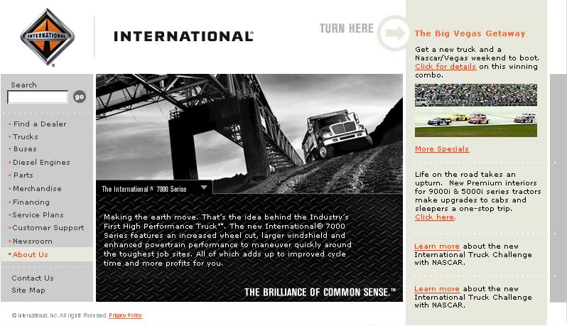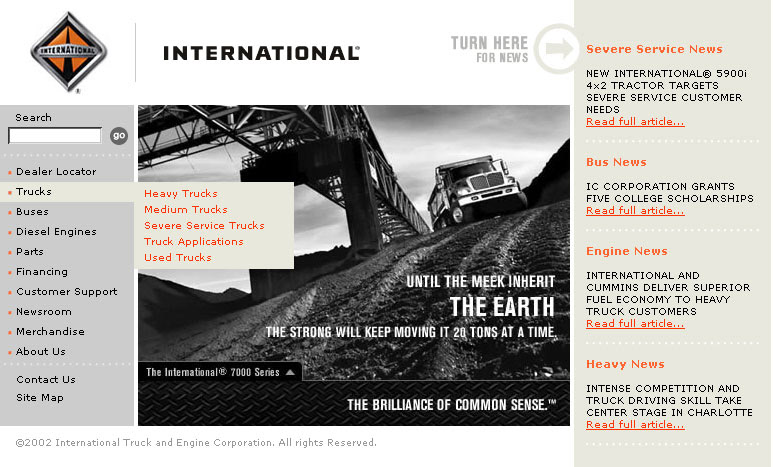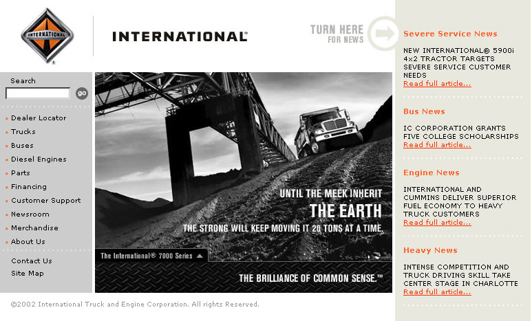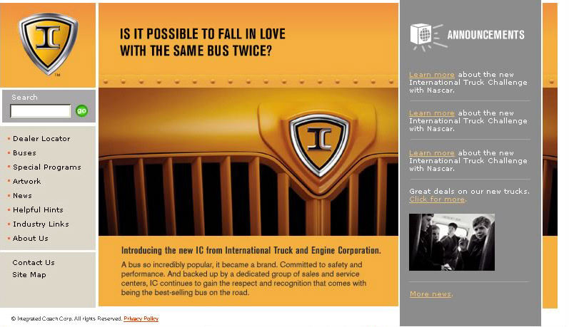 The International brand had been redesigned and refocused through creation of a new identity and advertising by Duffy Design. I worked with he team at Fallon to extend this redesign to the web. The International website required not only visual rebranding, but also required new functionality and information design. The site template was also reused for the IC Bus website.