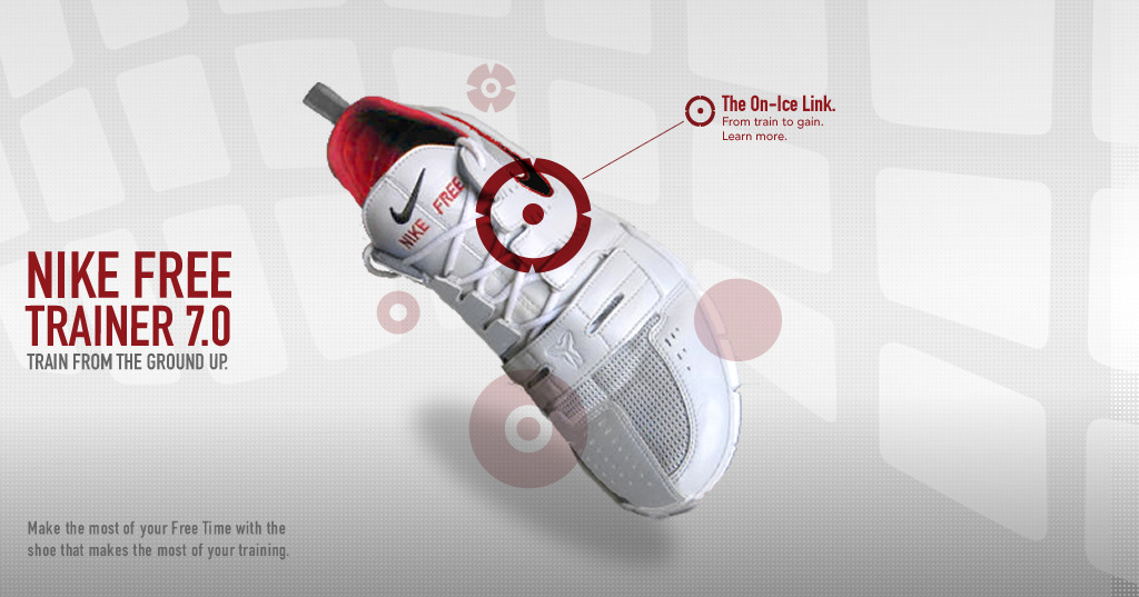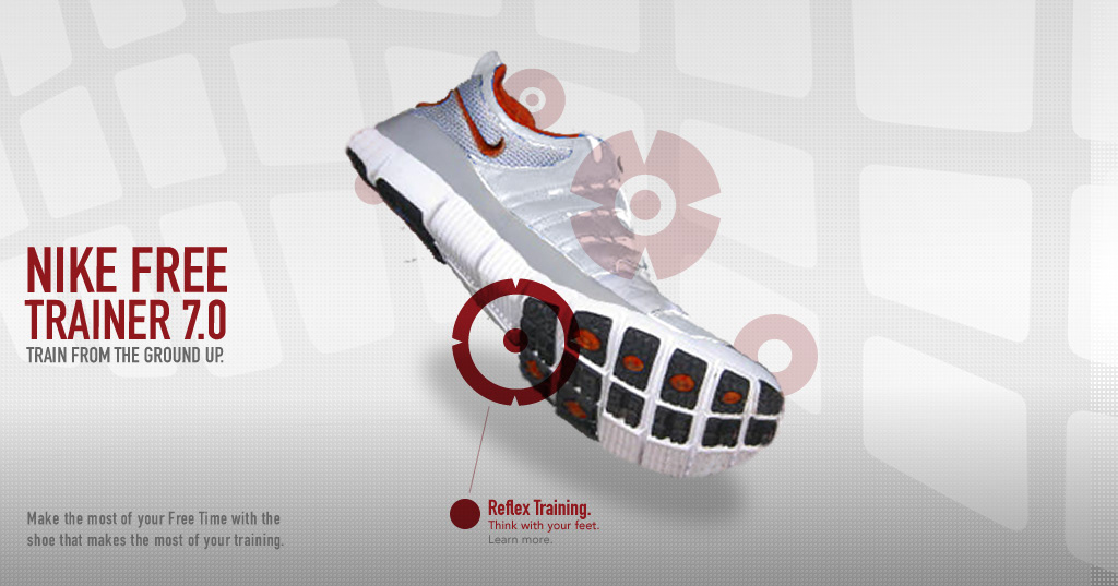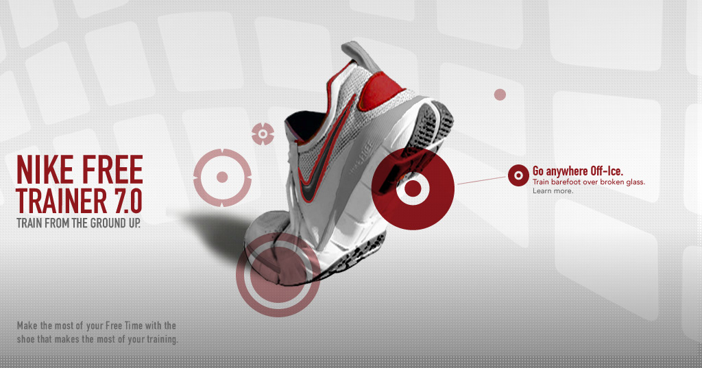 Free 7.0 feature navigation call out. User is able spin a CGI version of the shoe to various positions highlighting the design of the shoe.