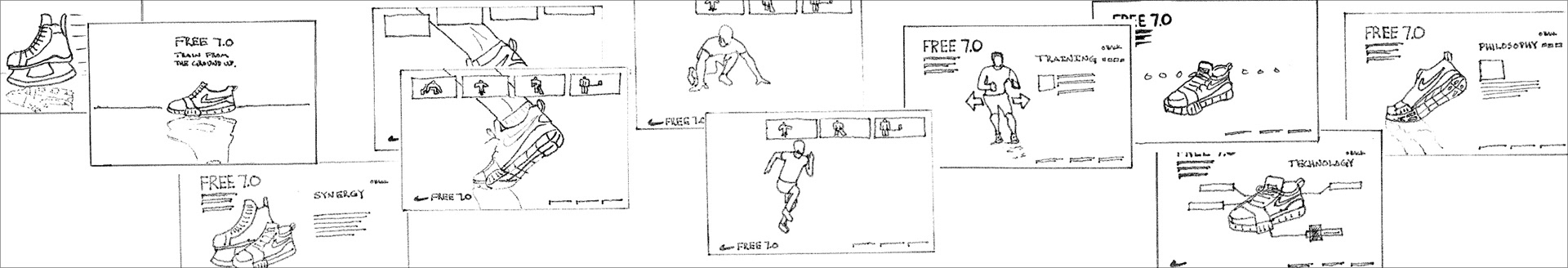 Ideation sketches around the user experience and the story of the Free 7.0 Shoe.