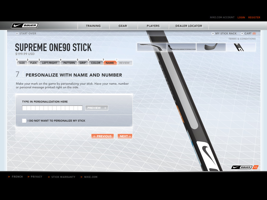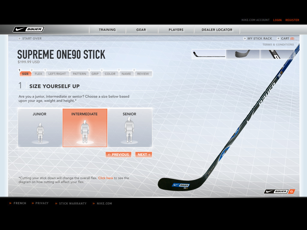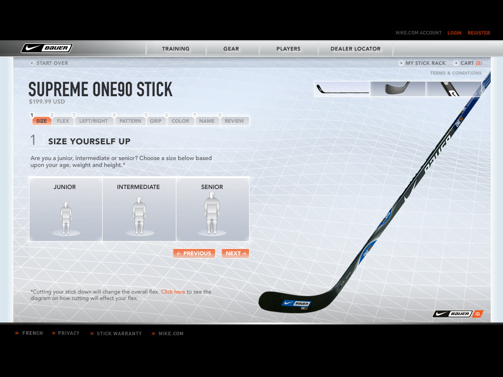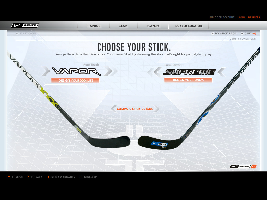 With this project, our solution allows users to completely build and order a customized stick both online and at kiosks in select stores. Emphasis was also placed on educating the user about each choice as well as differentiating their two main lines of sticks — Vapor and Supreme.