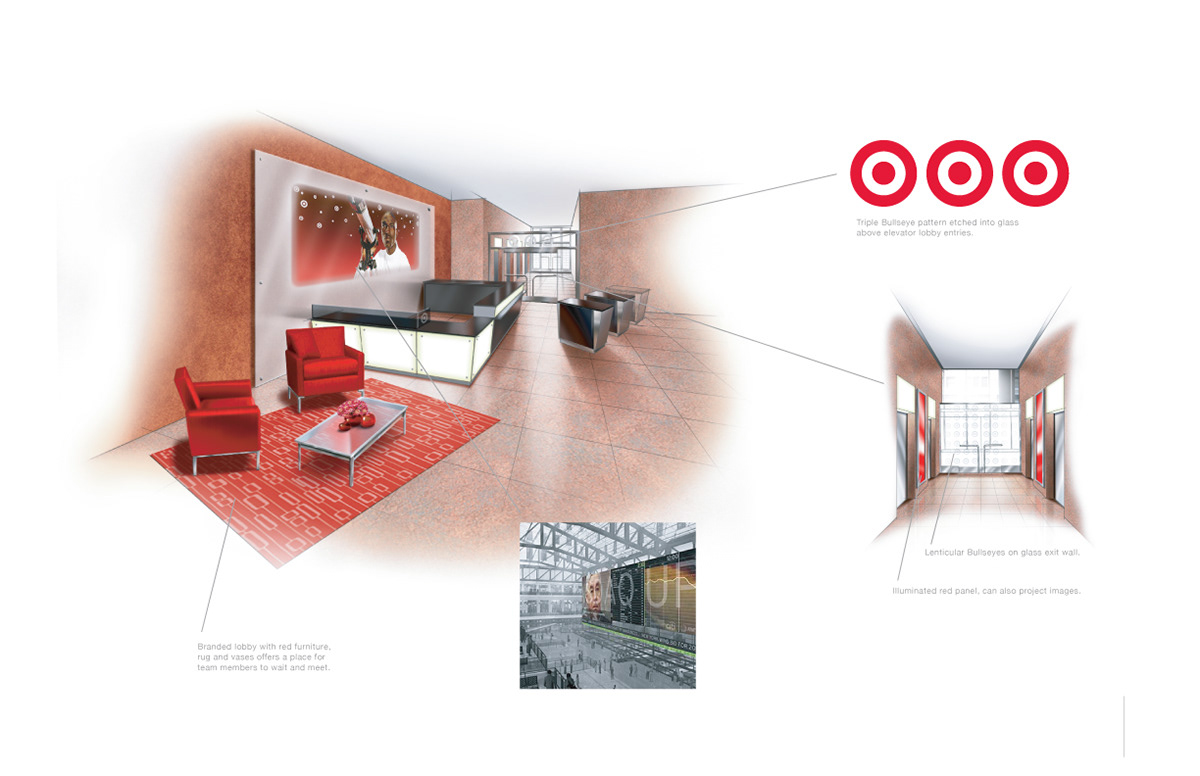Target City Center Lobby Concept. Our work with the architecture group was so well received that we were asked by the facilities group to concept the waiting areas of the City Center.