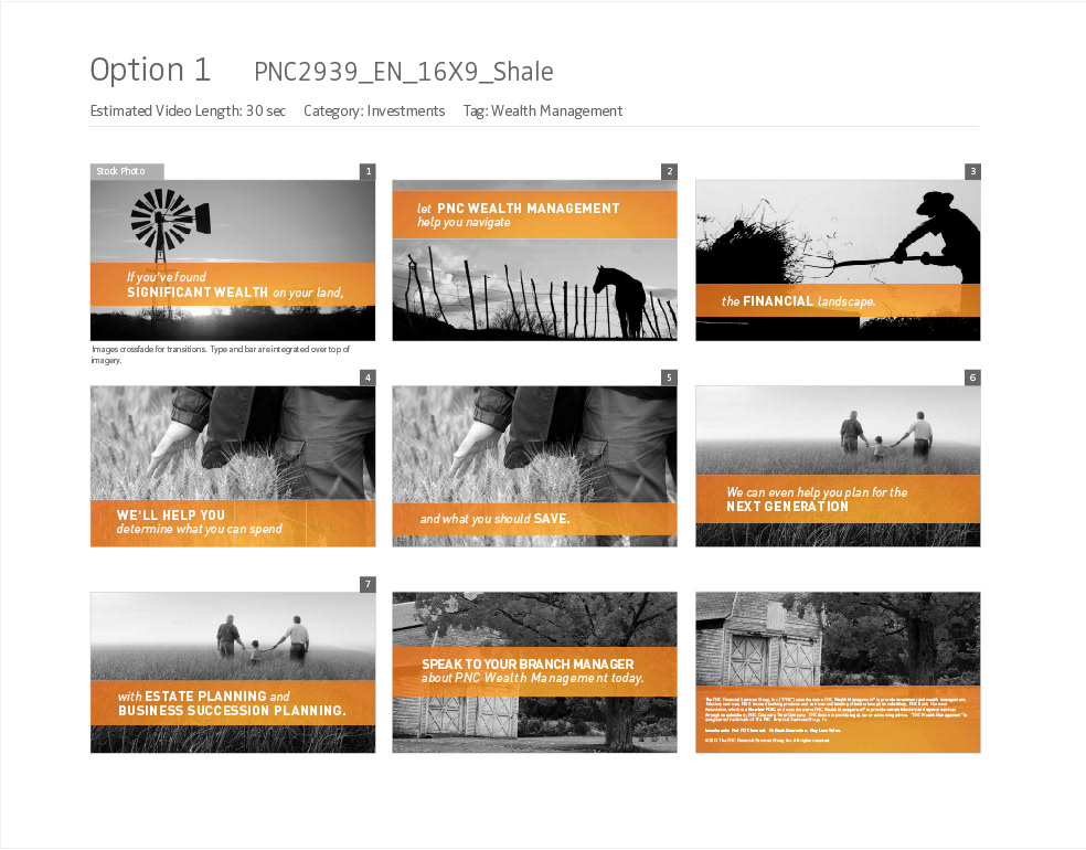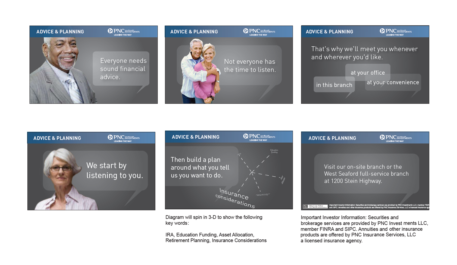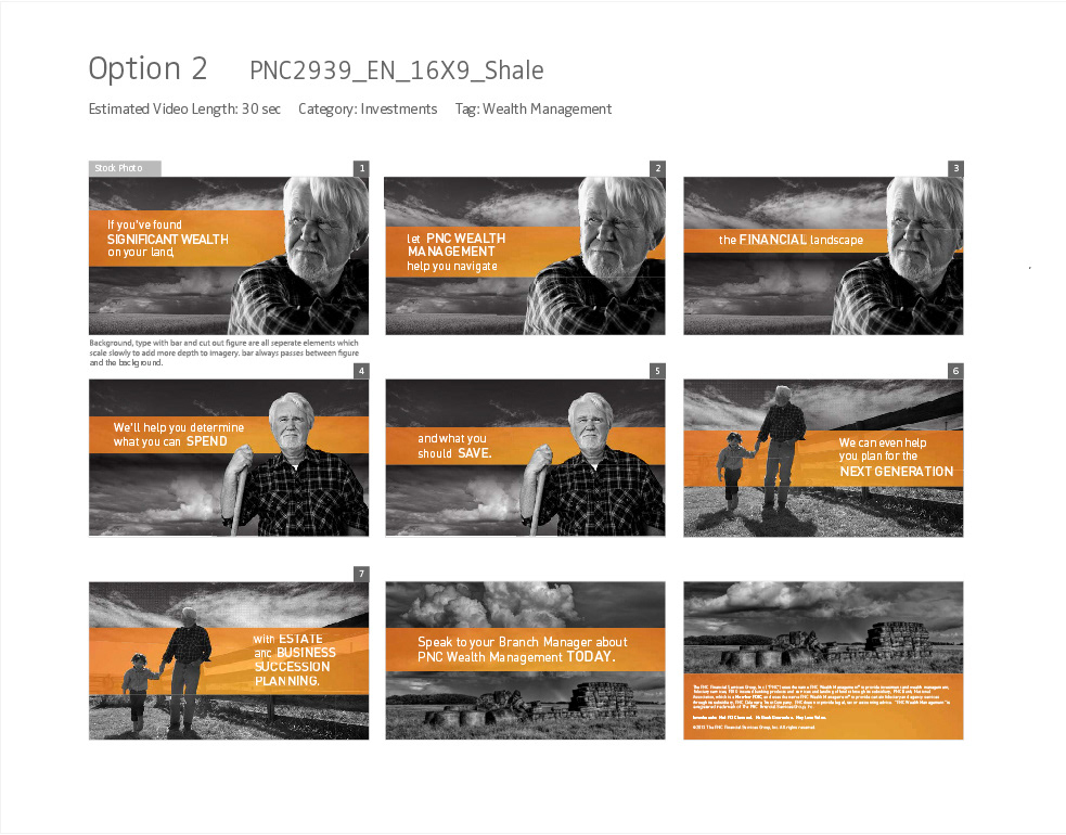 PNC In-branch 30 Second Wealth Management concept for John Ryan Company.