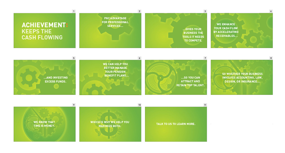 Animated PNC In-Branch Spot for John Ryan Company. Animated gears gradually reveal themselves to be the inner workings of a clock in this spot which pays off the 'time is money' message.